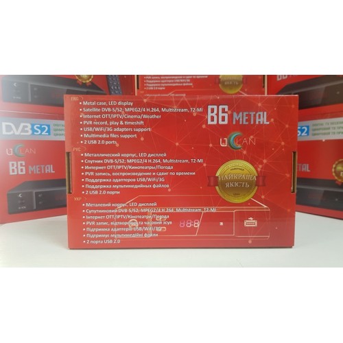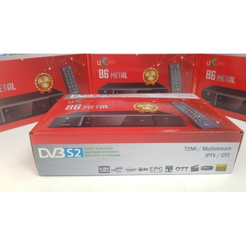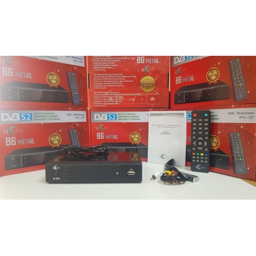 uClan B6 Full HD METAL NEW также можно использовать для просмотра медиафайлов с USB-флеш-накопителя во всех наиболее распространенных форматах. В дополнение ко всему перечисленному, приемник можно использовать для просмотра 32 каналов стандарта DVB-T2 спутникового вещания (реализована поддержка мультистрима).